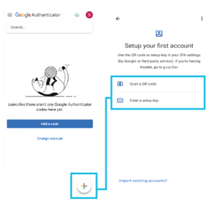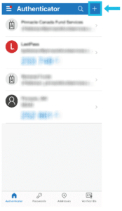 3. Click the plus (+) sign at the top of the authenticator to add an account.