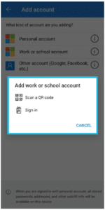 5. Select Scan a QR code or the code can be manually entered for those without a camera on their phone.