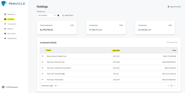 • If applicable, select the investor from the dropdown at the top.