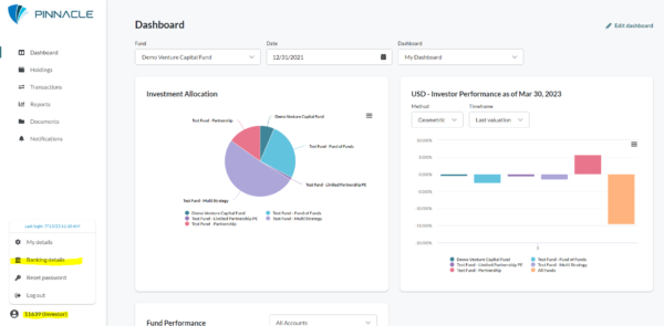 At this time any changes to banking information cannot be updated online.  All requests must be sent to Investor Services.  Please ensure you include your name, investor username and the applicable Fund in the email body.